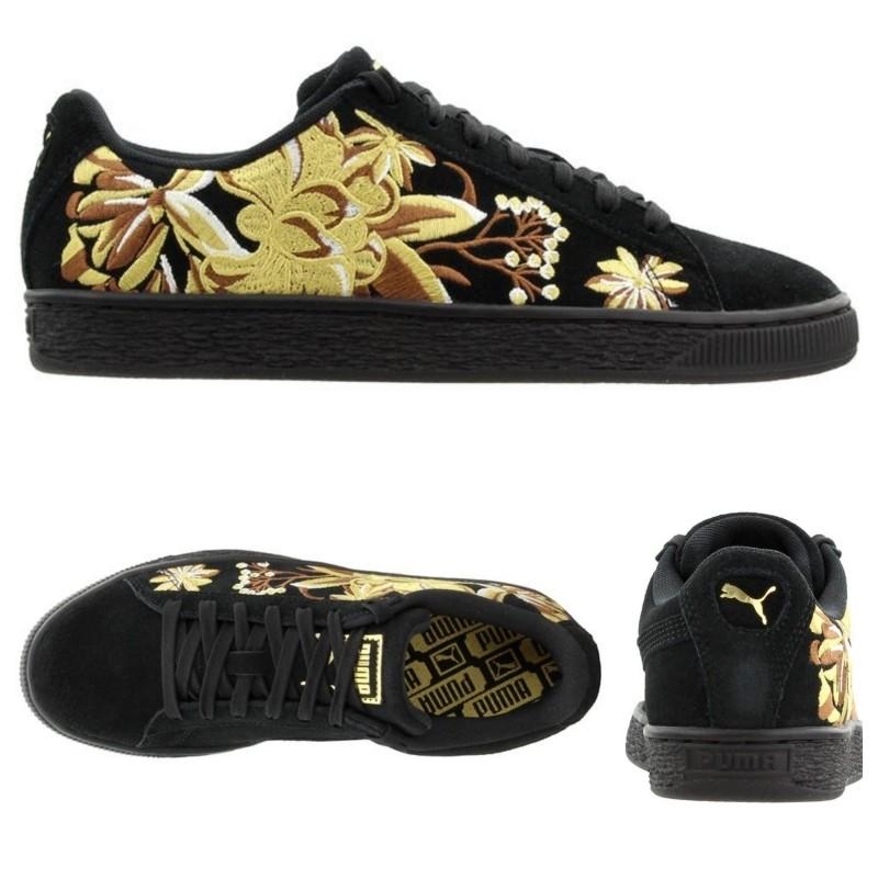 Puma プーマ スニーカー Suede Hyper Embroidery 花柄 刺繍 スエード ブラック ゴールド レディース シューズ 取り寄せ Stone1 ヤフー店 通販 Yahoo ショッピング
