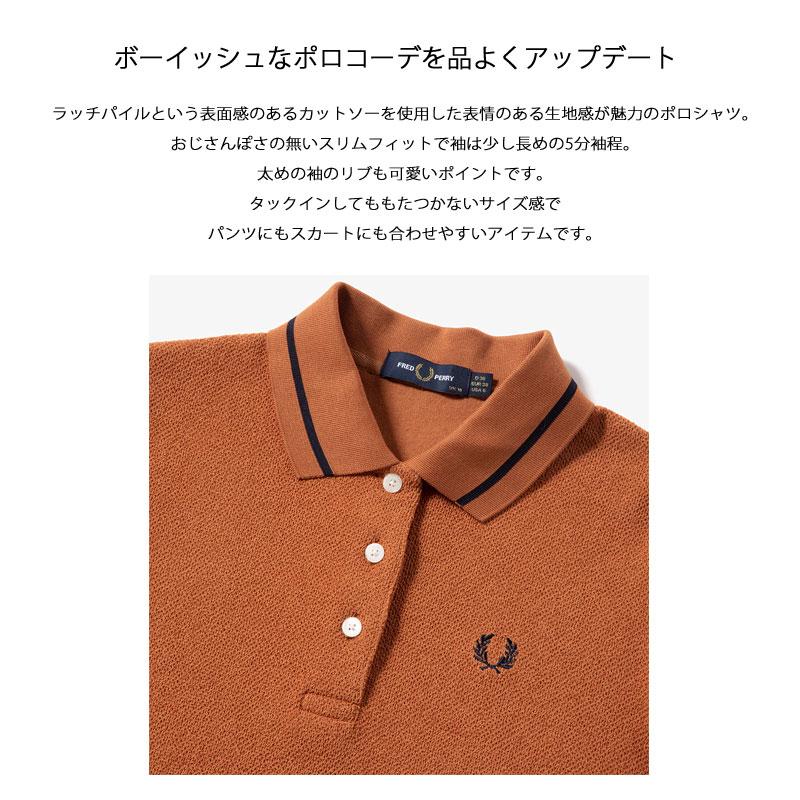 全国宅配無料 Fred Perry フレッドペリー ポロシャツ レディース Looped Pique Shirt F53 シャツ 半袖 半袖シャツ シンプル きれいめ スポーティ カジュアル ロゴ 刺繍 ワンポイント ママコーデ パイル 五分袖 テラコッタ 白 ホワイト アウトレット送料無料 f